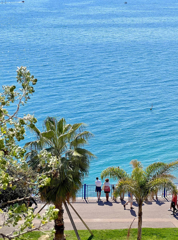 La Promenade des Anglais déroule son ruban élégant le long de la Méditerranée, invitant à la flânerie entre palmiers, plages de galets et lumière azurée. La mer décline tous les tons de bleu, comme si la un peintre avait vidé sa palette ici. Les chaises bleues invitent à la contemplation….