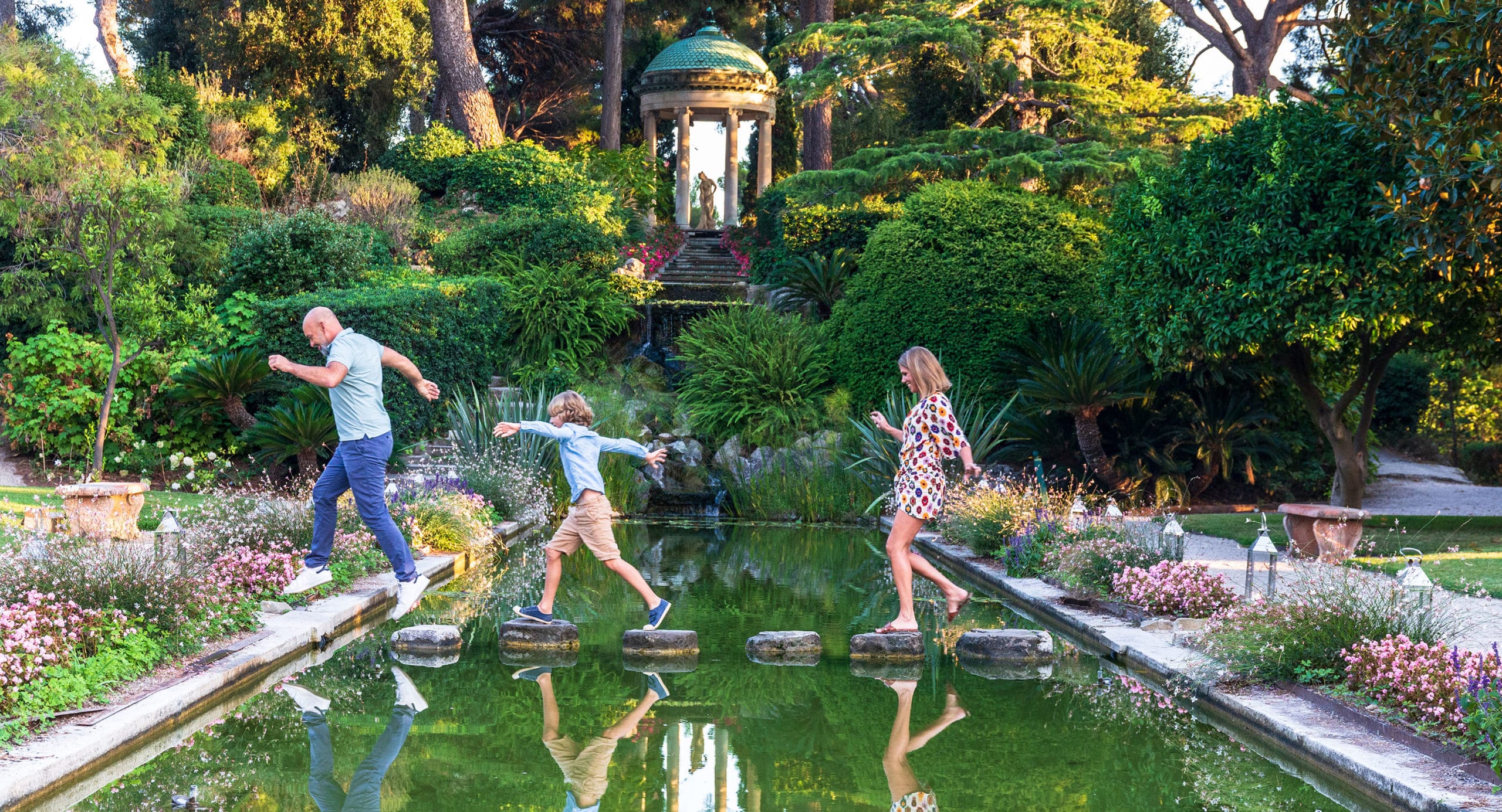 La superba villa costruita da Béatrice Ephrussi de Rothschild durante la Belle Époque è circondata da nove sontuosi giardini: fiorentino, spagnolo, francese, esotico, lapidario, giapponese, provenzale, il roseto e il giardino di Sèvres. Il giardino francese di 10.000 m2, punteggiato da cascatelle e aiuole, combina il classicismo di un canale, di un Tempio dell’Amore e una cascatella decorata simmetricamente con palme e grappoli di agavi. Da non perdere! (foto di copertina: OTM NCA / J.Kelagopian).
